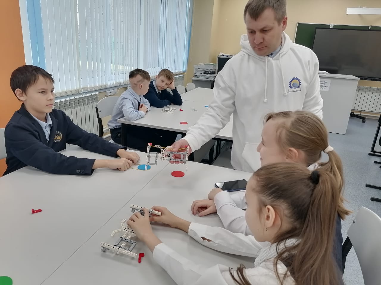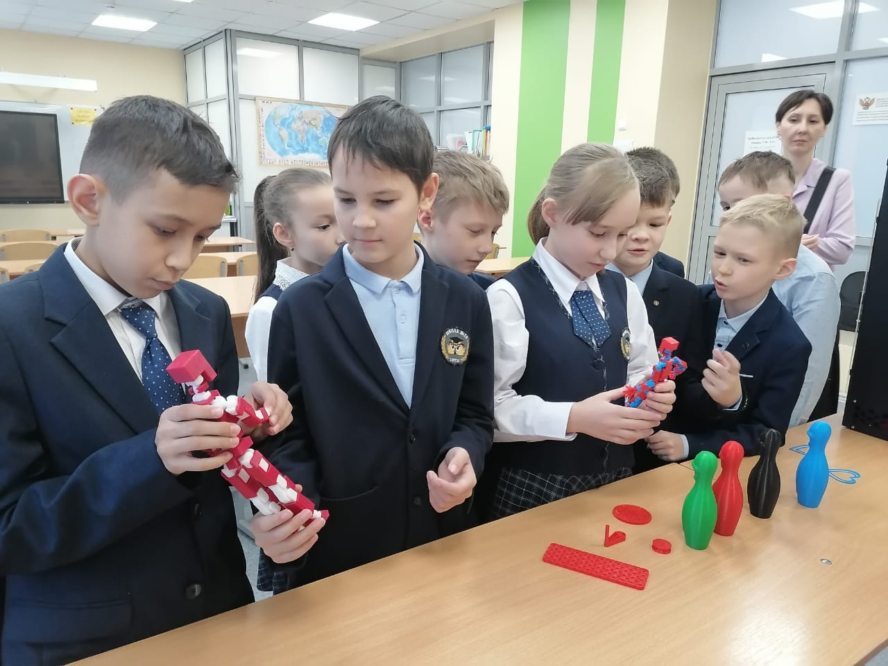 Под руководством Ленара Фаргатовича Гарипова юные инженеры собрали из конструктора Lego мощную «руку» для робота-баскетболиста. После сборки они подключили ее к управляющему модулю и с помощью кнопок устроили настоящие баскетбольные соревнования, закидывая мячи в корзину.