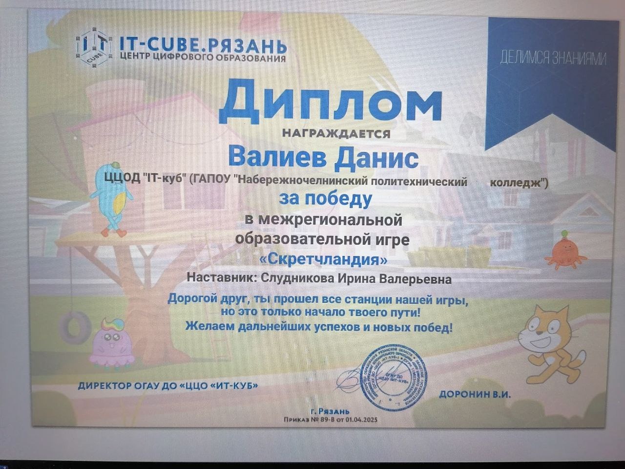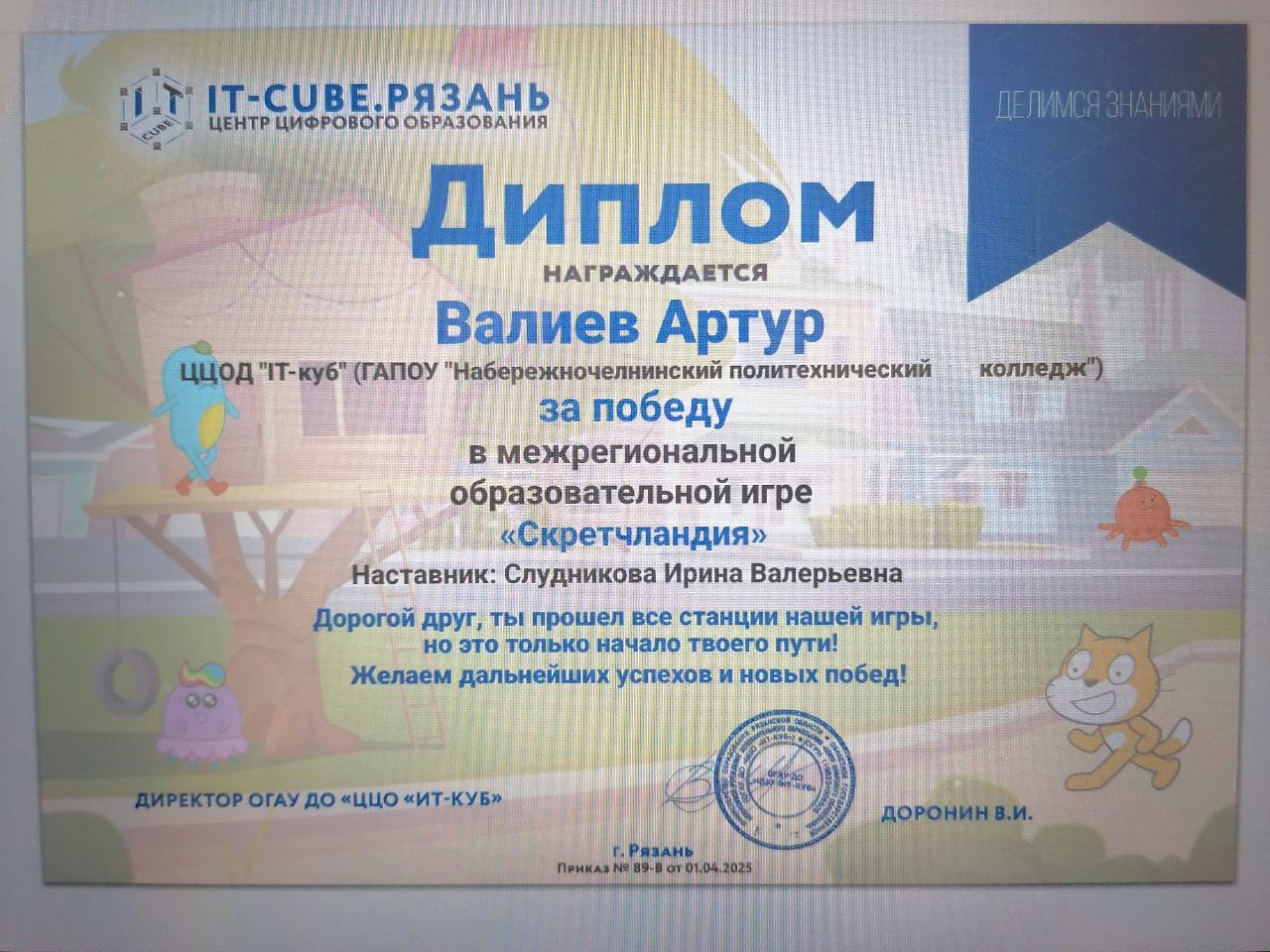 Юные программисты из IT-куба Набережночелнинского политехнического колледжа блестяще выступили на Межрегиональной образовательной игре "Скретчландия", организованной IT-кубом г. Рязань.
