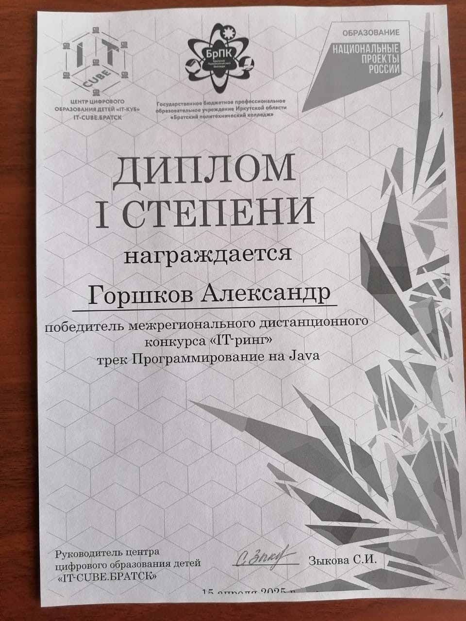 Участие в таком масштабном соревновании, где собрались сильные участники из разных городов России, уже само по себе достижение, а победа в треке "Программирование на Java" — это подтверждение высокого уровня подготовки и упорной работы.