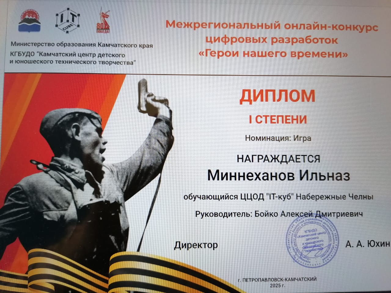"IT-куб.Камчатка" подвел итоги Межрегионального онлайн-конкурса цифровых разборок "Герои нашего времени", и мы рады поздравить нашего талантливого участника!