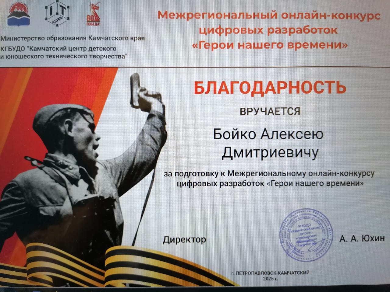 Также Благодарность получил его наставник — Бойко Алексей Дмитриевич, который вдохновляет своих учеников на достижение высоких результатов.